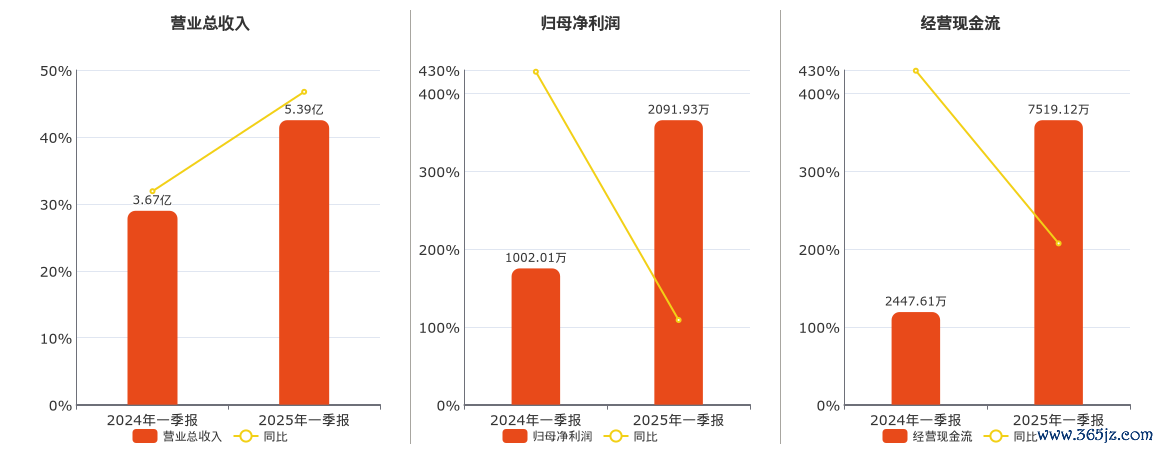 公司营业总收入为5.39亿元。归母净利润为2091.93万元,在已披露的同业公司中排名第152。经营活动现金净流入为7519.12万元。